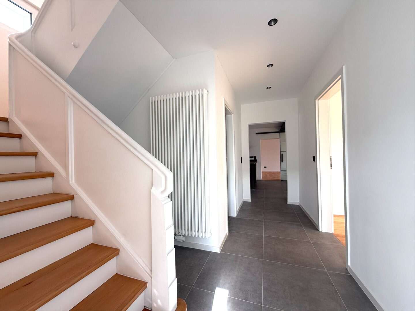 Die Liegenschaft erstreckt sich über drei großzügig gestaltete Etagen, die mit einem besonderen Sinn für Raumwirkung, Licht und Materialien geplant wurden. Bereits beim Betreten des Hauses fällt die konsequente Umsetzung eines modernen Wohnkonzepts ins Auge: