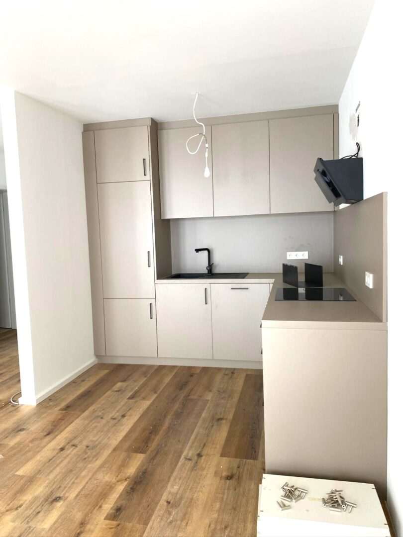 Im Mietpreis enthalten ist die vom Schreiner eingebaute Einbauküche.