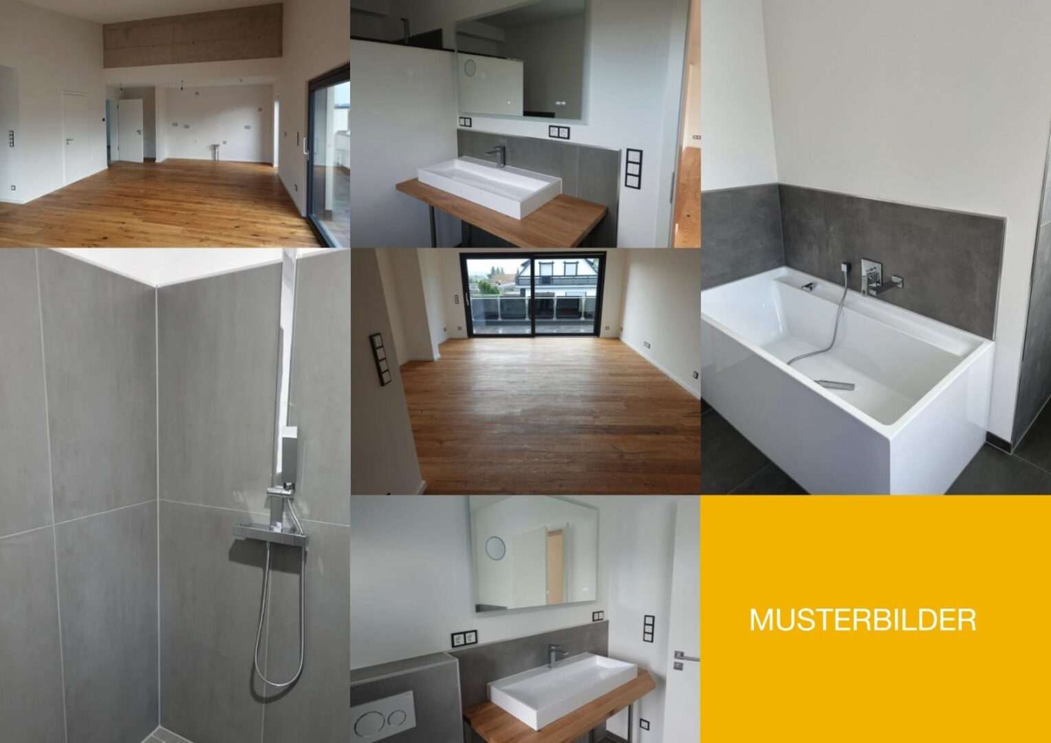 Naturholzparkettböden mit Fußbodenheizung, überwiegend bodentiefe Fensterelemente, elektrische Rollläden und vieles mehr. Mit hochwertigen und großformatigen Markenfliesen, bodengleichen Duschen und einer formschönen Sanitärausstattung namhafter Hersteller werden die Bäder und Duschbäder zu Oasen mit Entspannungsgarantie.